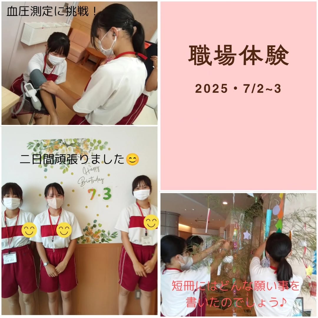 職場体験 先日西中学校の2年生が職場体験に来てくれました😊 将来、看護師・助産師を目指しているそうです。 今日の体験がこの先の進路に役立つといいなと思います♪