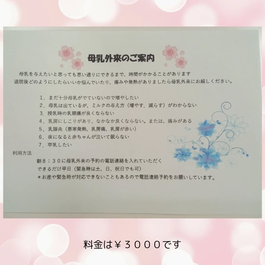 母乳外来のお知らせです♪